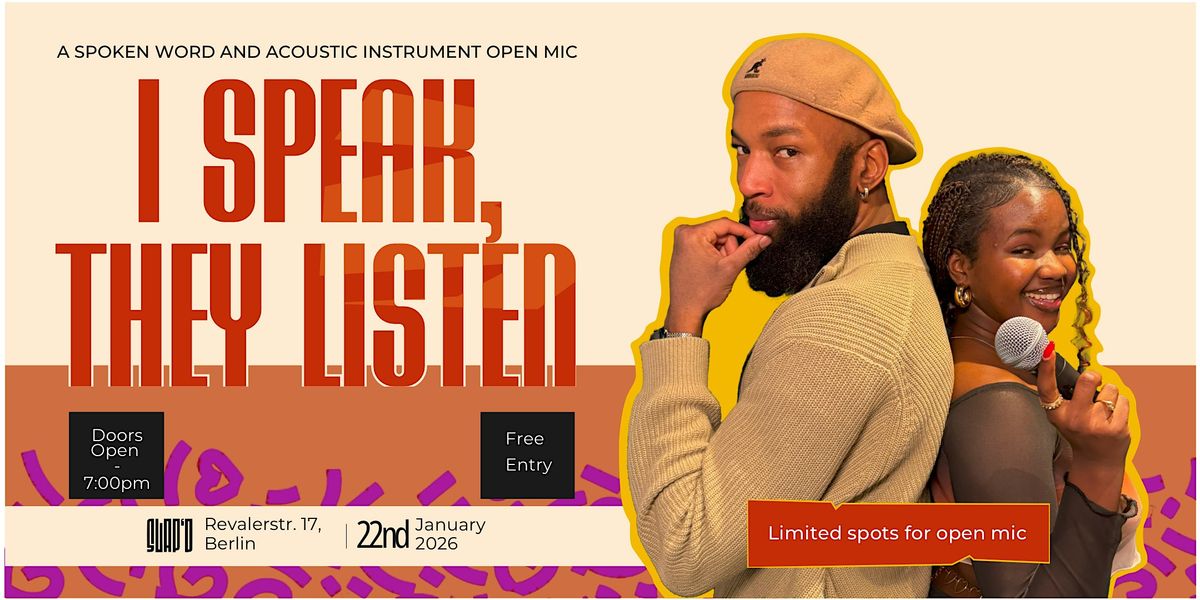 We are bringing to you yet another flavor of Home Before Dark. This time the lights will be dimmed and aimed at our stage where our spoken word and acoustic instrument open mic will come to life. I Speak, They Listen is a manifestation of you Berlin. It's a love letter to the beating heart of Berlin. The same heart that captures the pulse of the city and echoes that pulse in every creative corner. Art finds us anywhere and everywhere. I Speak, They Listen is a night of vulnerability, sharing and community. Berlin it's another night at Slap'd: bring your songs, poems, passion and Come Over!