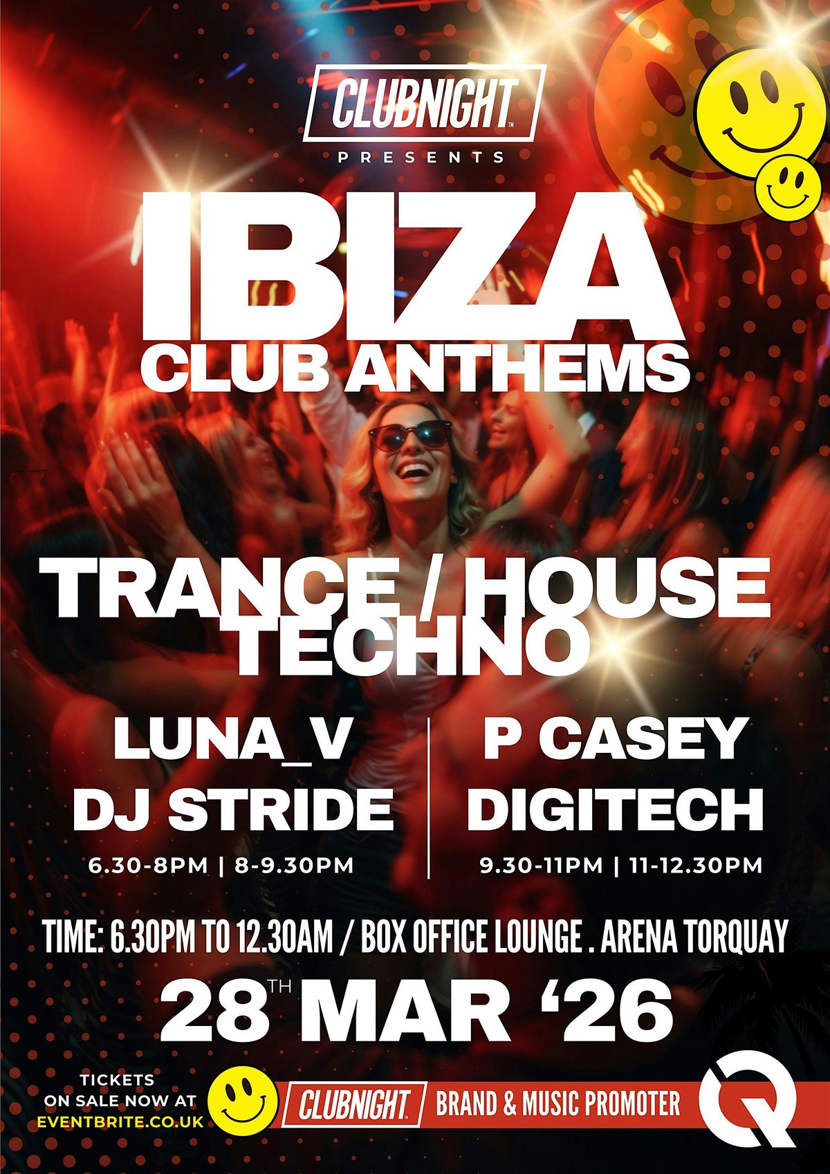 - Time: 6.30PM - 12.30PM (The perfect way to celebrate the club anthems with our exclusive artist line up)