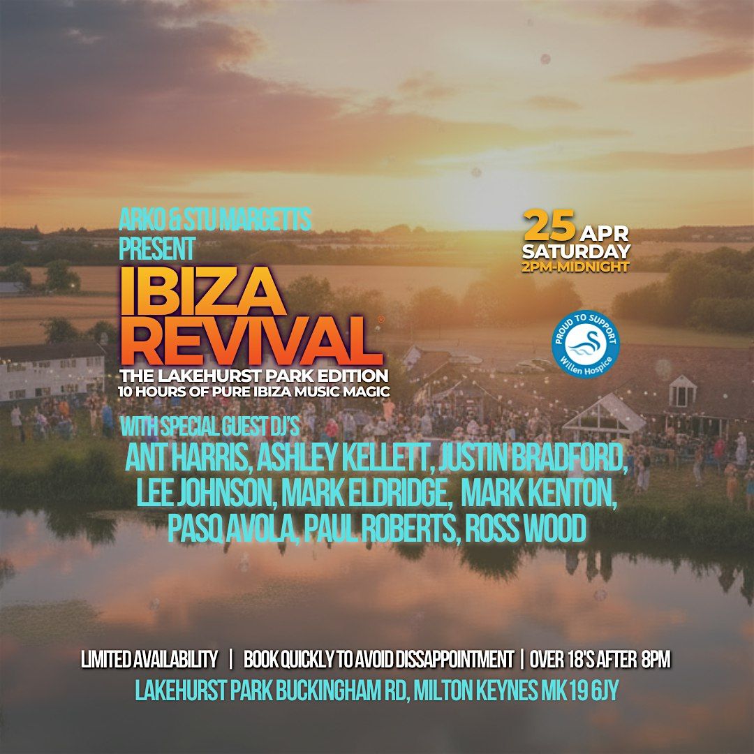 Ibiza Revival, The Lakehurst Park Edition marks the opening party of the season and brings ten hours of uninterrupted Ibiza-inspired music to one of Milton Keynes’ most scenic venues.