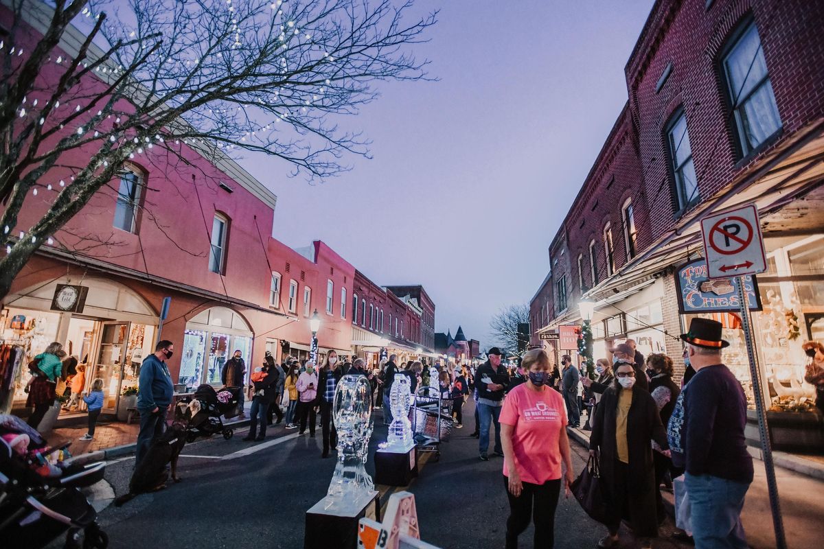 Ice Sculptures line downtown Berlin for our 2nd Annual Ice Art Festival, Tree lighting at 6pm, shops open late, carriage rides! Free Parking