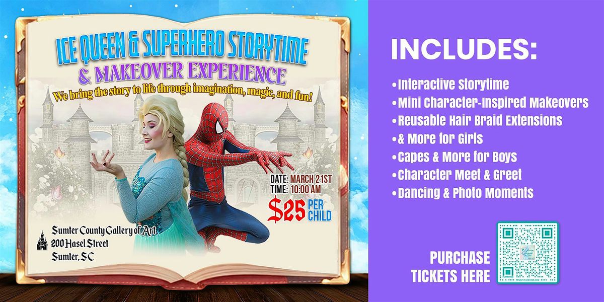 Where stories come to life! Kids will meet a real Ice Queen and superhero, enjoy interactive storytime, mini makeovers, dancing, and more.