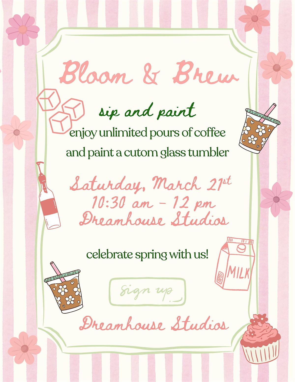 Grab your besties and join us for the ultimate spring hangout. We’re getting hands-on to create the cutest custom tumblers while the cold brew is flowing and the conversation is as sweet as the season.