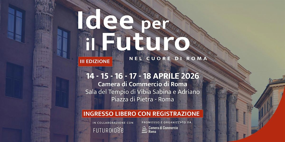Dal 14 al 18 aprile 2026 torna “Idee per il futuro – nel cuore di Roma”, a piazza di Pietra, nella suggestiva Sala del Tempio di Vibia Sabina e Adriano della Camera di Commercio di Roma.