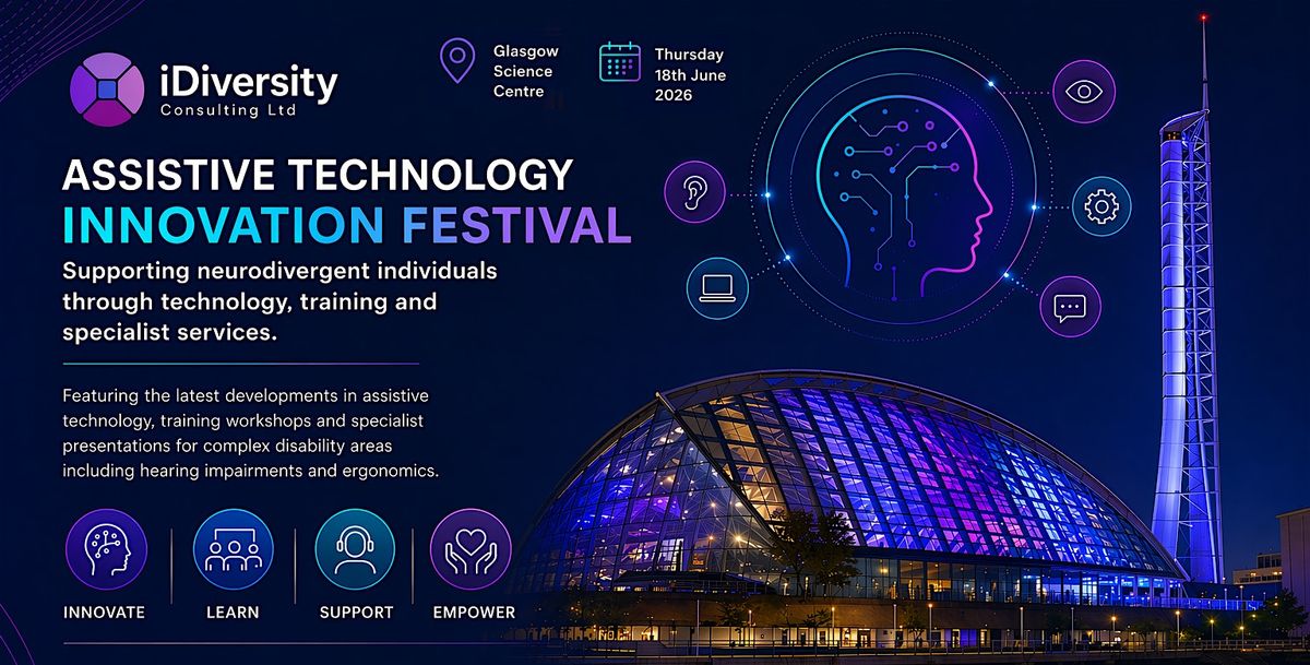 Join us for our one-day Assistive Technology Innovation Festival at the Glasgow Science Centre, bringing together professionals, organisations, and specialists focused on supporting neurodivergent individuals.