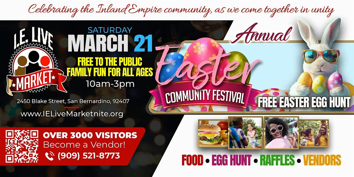 Free Easter egg hunts, candy, special prizes for the whole family, games, photos with Easter Bunny, vendors, free hair cuts, face painter, and balloon twister