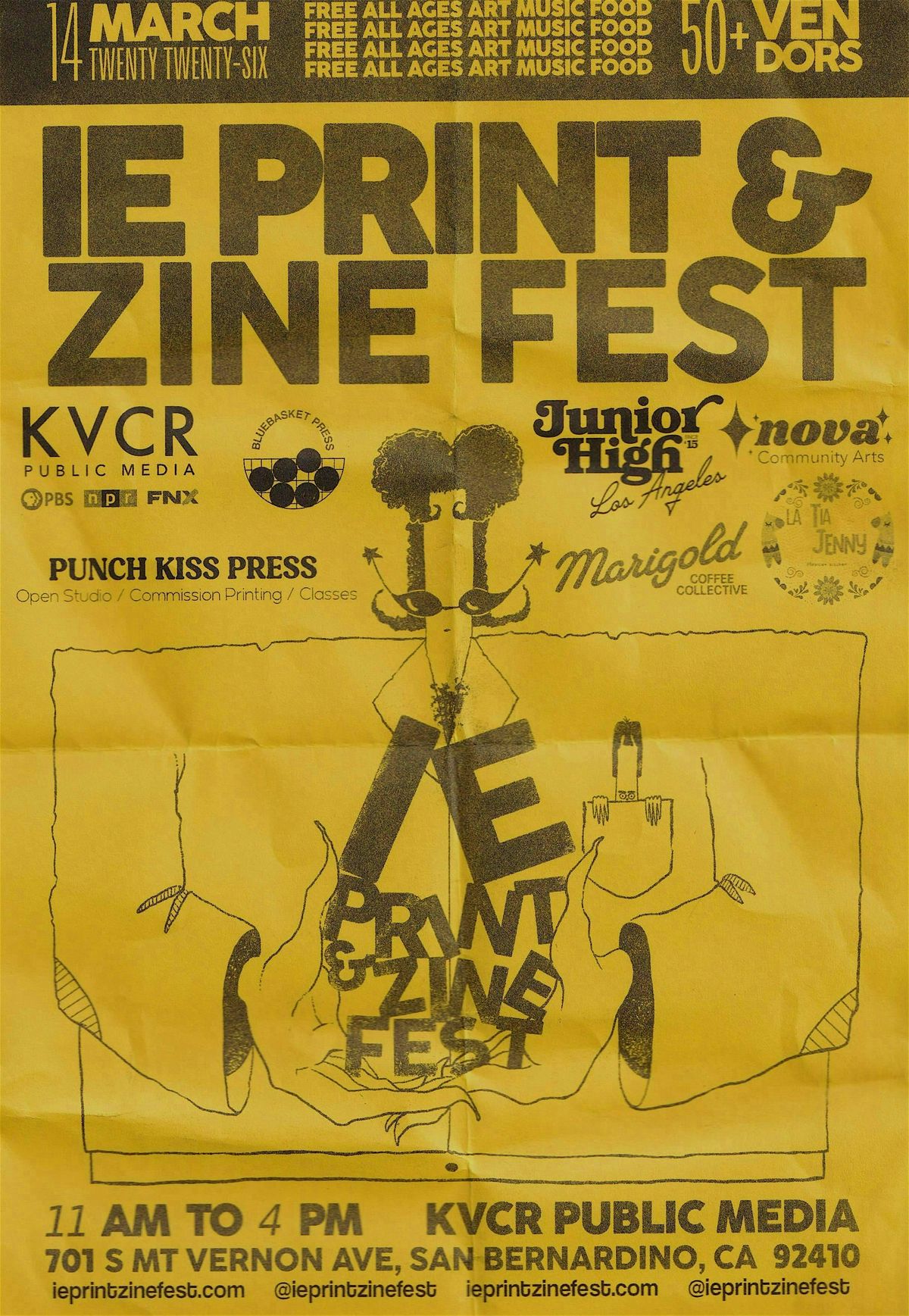 The IE Print & Zine Fest is a free annual event celebrating prints, zines, DIY, and independent publishing. It showcases a large market of zinesters, printmakers, presses, publishers, and independent artists from across Southern California, bringing together the niche and ever-evolving community of DIY and print-loving creatives in the Inland Empire. Attendees can explore the expansive world of print through hands-on demonstrations, and buy/trade zines on any number of topics, from LGBTQ+ histories, politics, community gardens, to personal stories and graphic design.