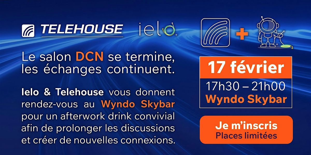 Cet afterwork sera l’occasion idéale d’échanger autour de vos enjeux, de développer votre réseau et de découvrir les expertises complémentaires d’Ielo et de Telehouse, le tout dans une atmosphère conviviale et détendue.