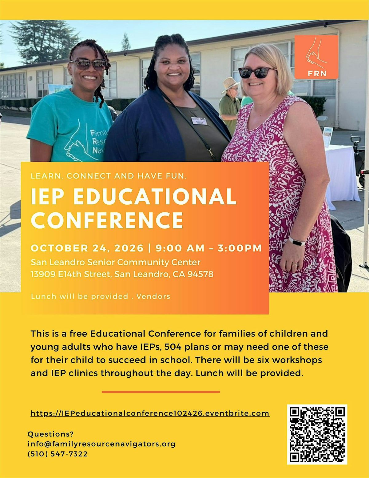 This is a free Educational Conference for families of children and young adults who have IEPs, 504 plans or may need one of these for their child to succeed in school. There will be six workshops and IEP clinics throughout the day. Lunch will be provided.