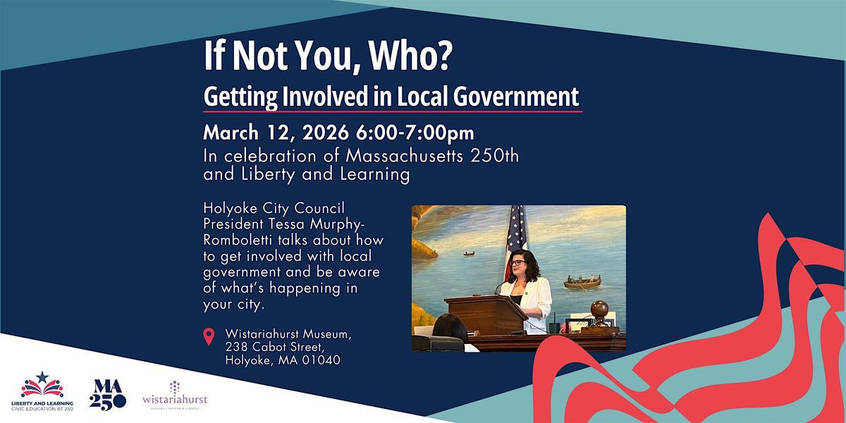 Holyoke’ City Council holds hearings, passes ordinances, financial orders, and resolutions, as well as oversees city finances. Councilors also address resident concerns. City Council committees hold various duties including appointing municipal officers, approving municipal budgets, and approving laws. In her talk, Murphy- Romboletti will offer information on the functions of Holyoke’s City Council and how residents can get involved. If Not You, Who? Getting Involved in Local Government will occur Thursday, March 13, 2026 from 6:00-7:00pm at Wistariahurst Museum during Civic Learning Week. This annual, nonpartisan awareness week brings together students, educators, policymakers, and leaders in the public and private sectors to highlight and further energize the movement for civic education in states and communities across the nation.