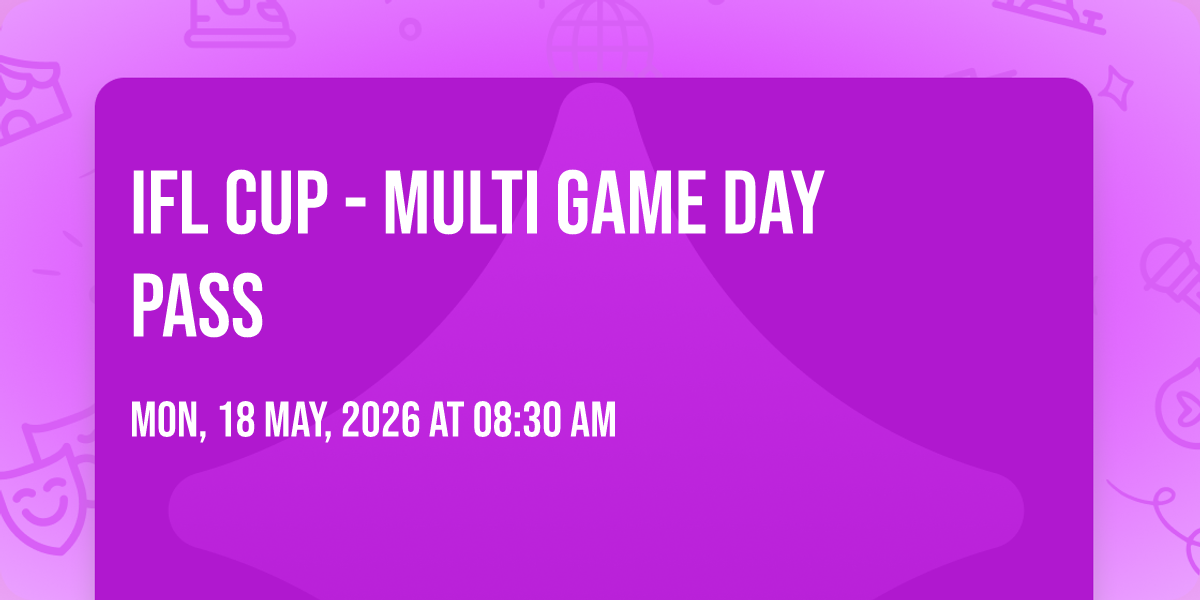 📍 Location: 41.2197, -96.027✨ Enter a world of endless possibilities at IFL Cup - Multi Game Day Pass, where every moment tells a story! 🏛️ The stunning American Dream in vibrant Omaha, NE transforms into a realm of wonder on May 18th, 2026 at 08:30 AM. 🌟 They have crafted an experience that goes beyond the ordinary, combining elements of surprise, delight, and pure entertainment. Every detail has been thoughtfully considered to ensure your journey with us is nothing short of extraordinary. 🎯 Join fellow adventure seekers and memory makers in this celebration of imagination and innovation. 🎊 Reserve your spot today and be part of something truly special!