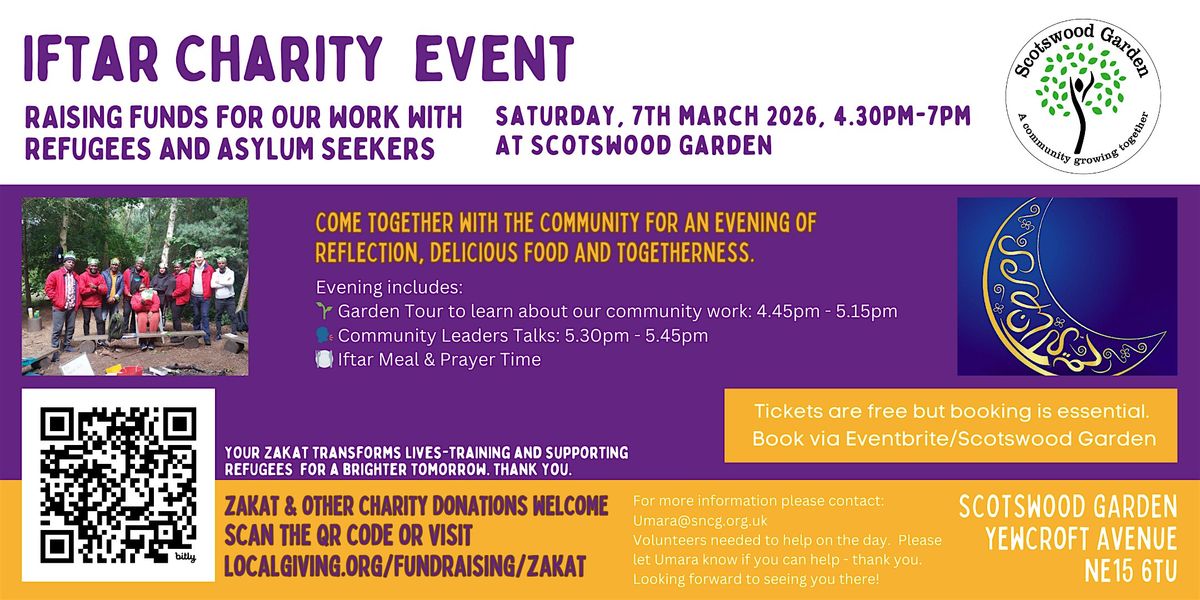 Welcome to Iftar at Scotswood Garden! Join us for a delightful evening of breaking fast together in the serene setting of Scotswood Garden. This in-person event is a wonderful opportunity to connect with the community, enjoy delicious food, and embrace the spirit of Ramadan. Come and experience the joy of sharing a meal with friends and neighbours as the sun sets. We look forward to welcoming you to this special gathering at Scotswood Garden!