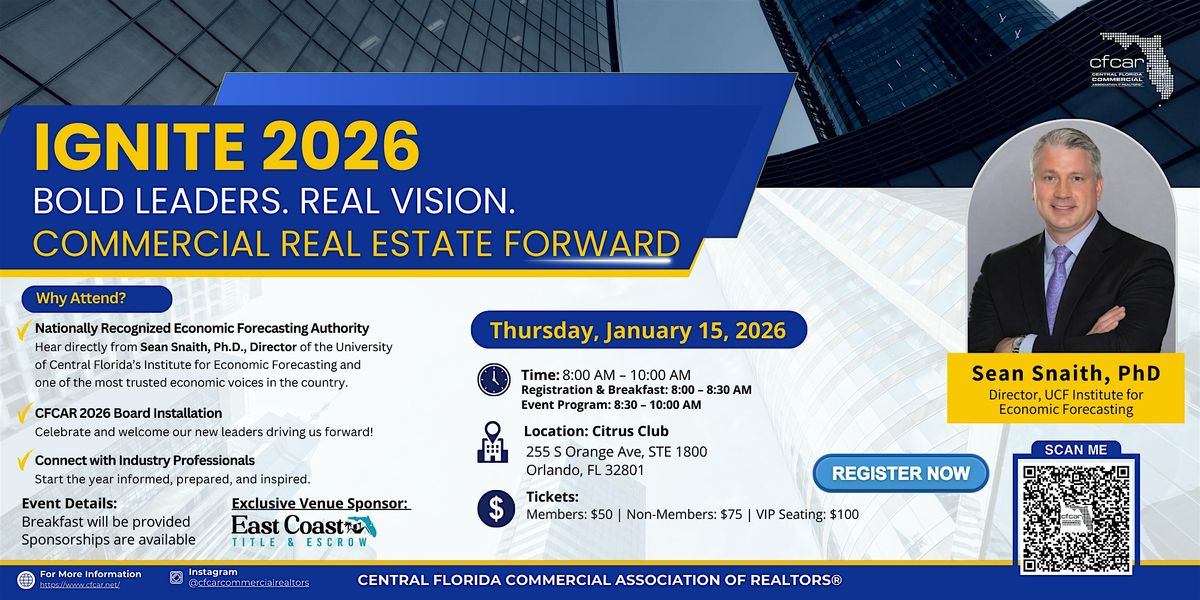 Join CFCAR for our 2026 Board Installation and kick off the year with an Economic Forecast with Sean Snaith, Ph.D., Director, Institute for Economic Forecasting (IEF).