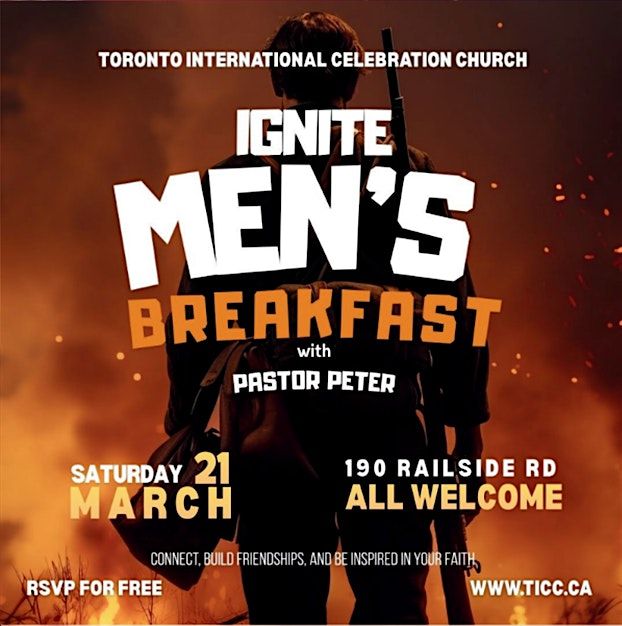 Join us for the Ignite Men’s Breakfast on Saturday, March 21 at 9:00am at Toronto Pavilion. This is more than a meal. It is a powerful gathering of men from across our city and beyond who value brotherhood, faith, and authentic connection. Whether you are a young professional, a father, a student, or enjoying retirement, you will find a welcoming space to build meaningful friendships and strengthen your walk with God.