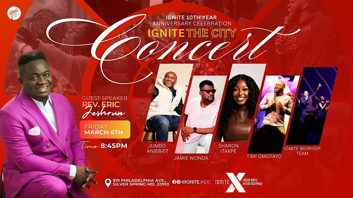Join us for an unforgettable night of worship, praise, and celebration as Ignite Church of Jesus House DC marks 10 years of God’s faithfulness with our Ignite the City Concert.