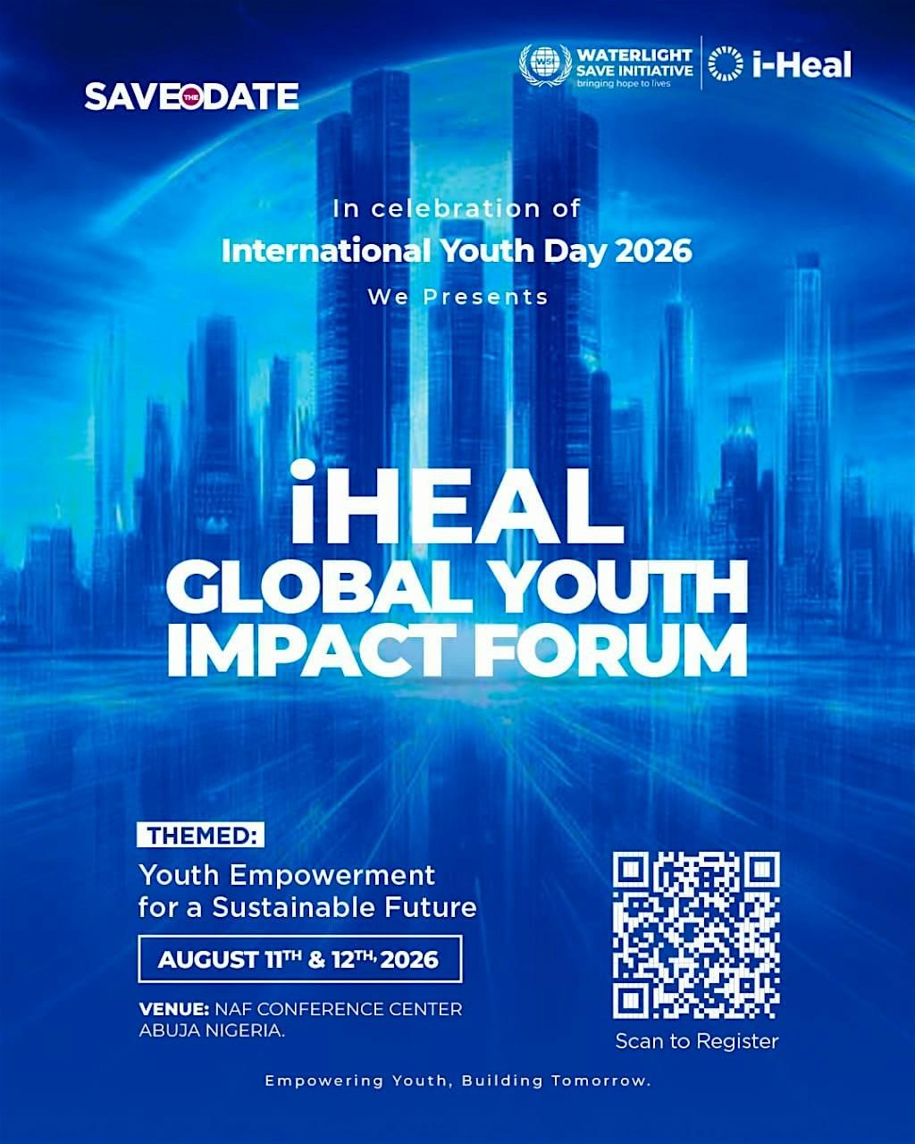 The iHEAL Global Youth Impact Forum by Waterlight Save Initiative is a dynamic platform empowering young people to transform bold ideas into tangible impact across Income, Health, Education, Access to Water, and Living Standards.