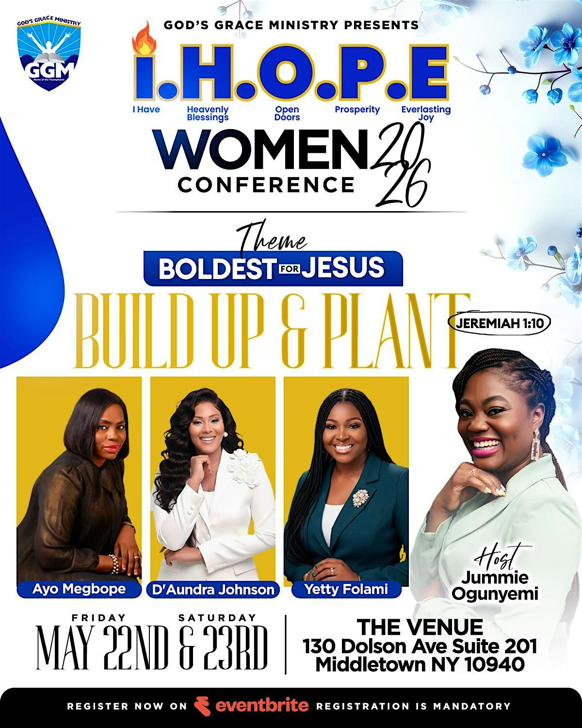 This year’s I.H.O.P.E Conference is centered on the call to “build up and plant”—to grow spiritually, tear down limitations, and step fully into the life God has ordained for you.