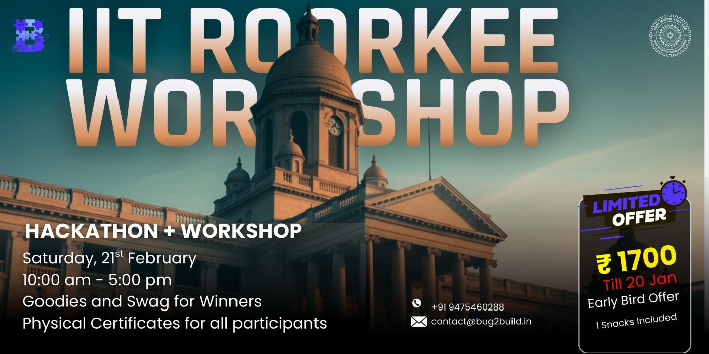 Immerse yourself in the cutting-edge world of technology and innovation at the IIT ROORKEE WORKSHOP & HACKATHON hosted by Bug2Build!