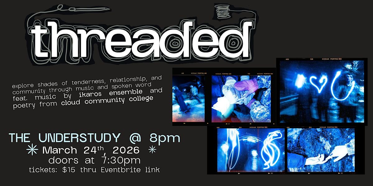 Chicago-based string collective Ikaros Ensemble partners with local poets inside and out of writing collective Cloud Community College to present Threaded - a collaborative tapestry of music and spoken word, indulging in themes of love and connection.