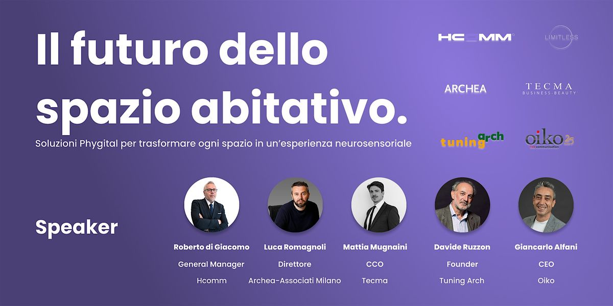 Lo spazio non è solo architettura: è esperienza, emozione, memoria. Attraverso sei interventi di alto profilo, esploreremo come le tecnologie phygital — luce, audio spaziale, olfattività, vibrazione aptica — possano trasformare ogni ambiente in un'esperienza neurosensoriale progettata con precisione.