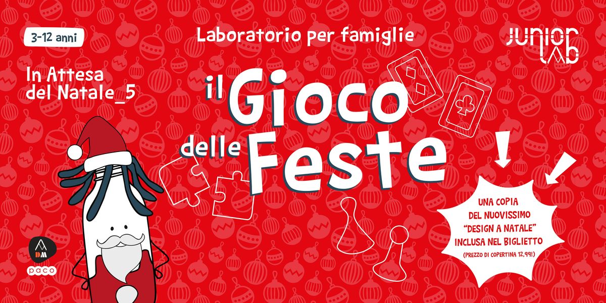 Laboratorio speciale per il lancio del nuovissimo quaderno del Junior Lab "Design a Natale". Il prezzo del biglietto comprende una copia del quaderno ad un prezzo promozionale (prezzo di copertina €12,99).