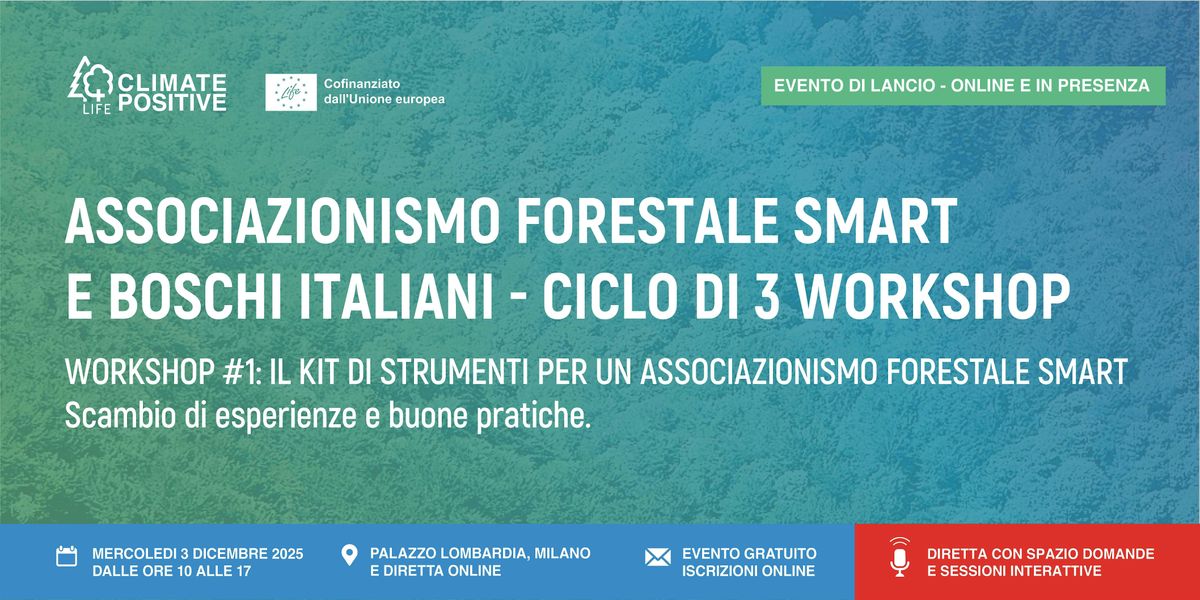- Mercoledì 17/12/2025 dalle 9 alle 13 | Workshop #3: Associazioni forestali e sostenibilità economica - Strategie di gestione e opportunità di crescita. Evento online, iscriviti qui