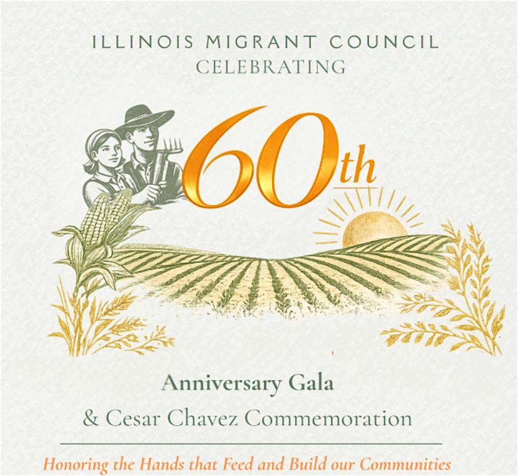 Welcome to the Illinois Migrant Council 60th Anniversary Gala & Cesar Chavez Commemoration! Join us on March 28, 2026 at 6:00 PM for a night of celebration and reflection. Let's come together to honor the incredible work over the past six decades.