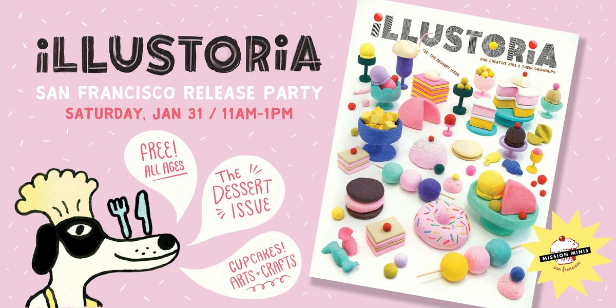 There will be dessert-themed crafts and activites led by our extraordinarily talented resident illustrator and lead librarian, Jade Howe, Illustoria issues and subscriptions for sale, and free cupcakes generously donated by our awesome neighbors, Mission Minis.