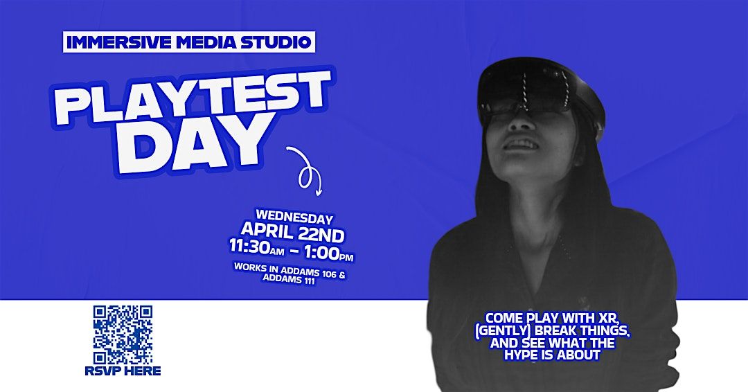 Now’s your chance! Join us for a playtest session where you can explore, experiment, and give feedback on the latest Immersive Media Studio projects. No experience needed! Just bring your curiosity (and maybe a little courage).