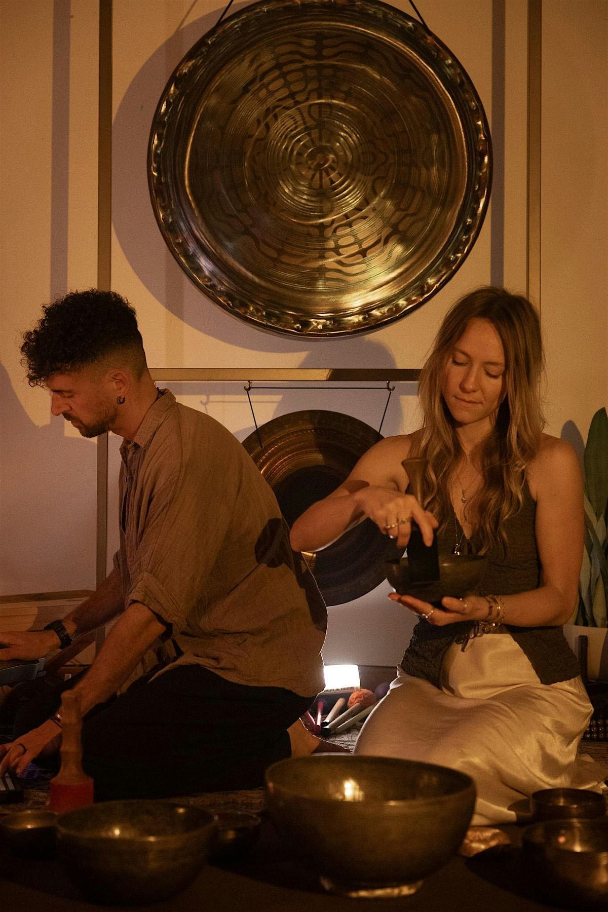 Fabio’s path weaves together 15 years in the electronic music scene with ancient sounds and healing frequencies, while Mona blends yogic wisdom, breathwork, sound, voice, and nervous system practices rooted in her own healing journey.