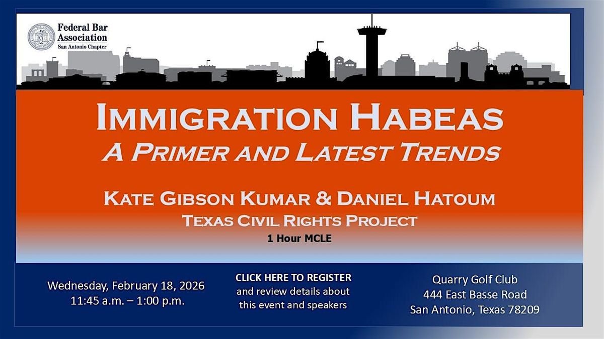 The FBA San Antonio Chapter is pleased to host Kate Gibson Kumar and Daniel Hatoum for this month's CLE luncheon. This event will offer 1 hour of MCLE credit.
