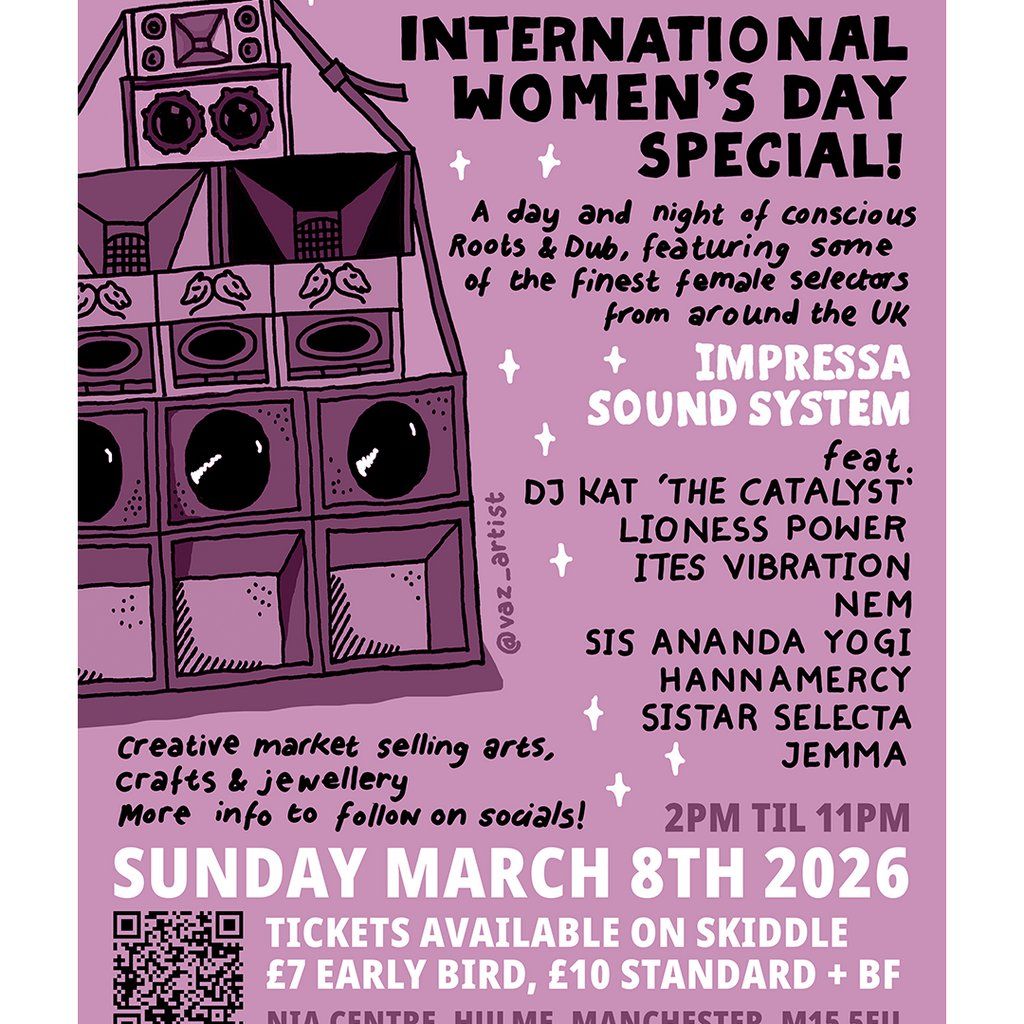 A special afternoon and evening of conscious roots & dub music with a one-off female only line-up to honour this day International Women's DayMusic Genres : Dub, Reggae