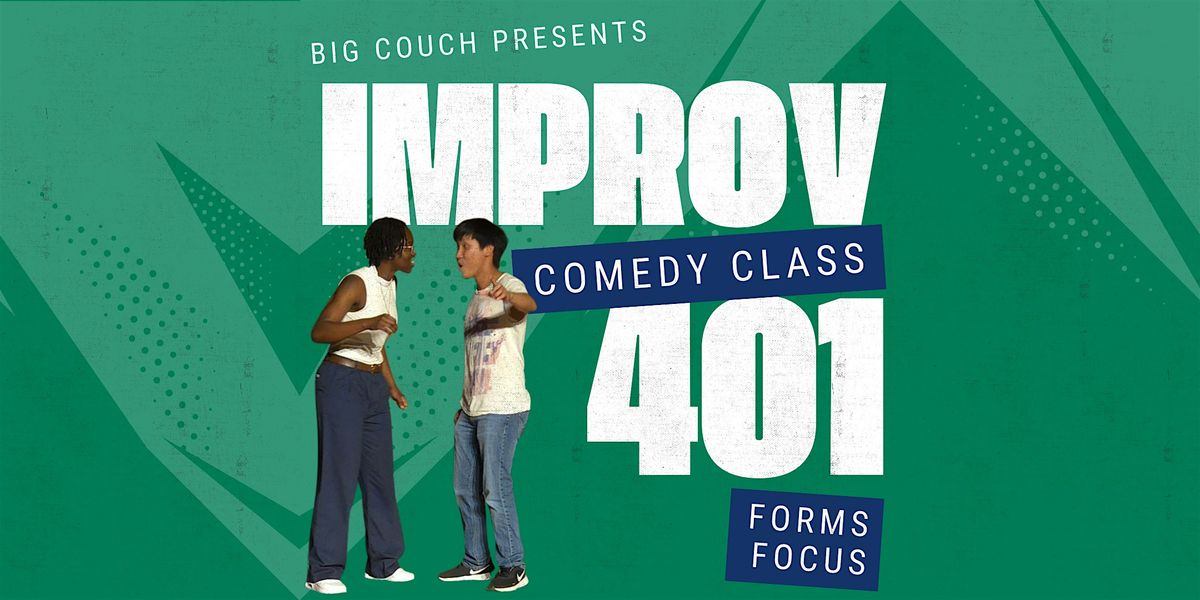 Improv 401 is open to anyone that has had at least three levels of improv classes. It consists of eight two-hour classes on Wednesdays (April 8, 15, 22, & 29 and May 6, 13, 20, & 27) from 6 pm to 8 pm at Big Couch's Bywater location at 1045 Desire Street, New Orleans, LA 70117. At the culmination of the course, attendees will put on an evening improv show on Thursday, June 4 at 8pm.