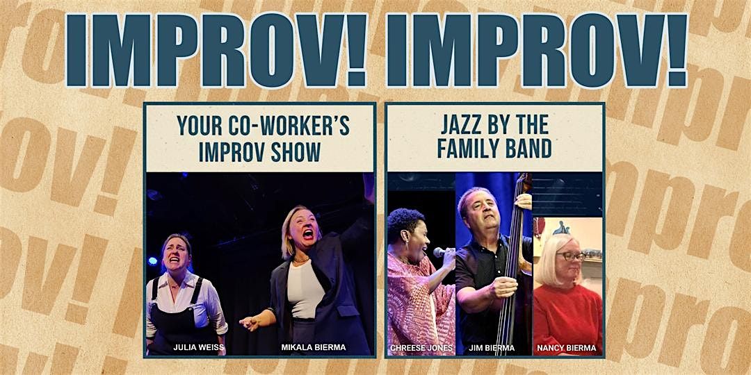 Join us for an evening of improv comedy and jazz improv you won’t forget. First, see two veteran improvisers (Mikala Bierma and Julia Weiss) explore the funniest part of having a job with “Your Co-Worker’s Improv Show.” Then, watch some of the better jazz musicians in town (Nancy and Jim Bierma, Chreese Jones) bring down the house in the second act. Oh yea, and did I mention they’re all part of the same family? Fun, guaranteed!