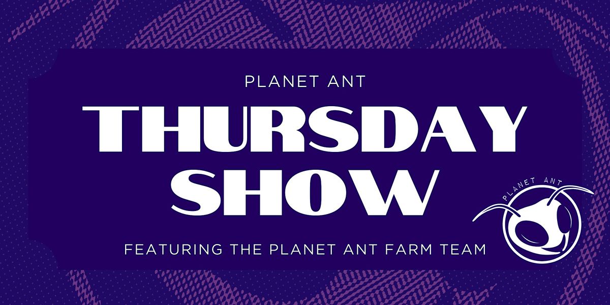 The Thursday Show is Planet Ant’s weekly live variety night, featuring original sketch comedy, improv, character bits, and guest performers. Every show is created fresh and performed live, with a rotating monthly theme that ties each night together.
