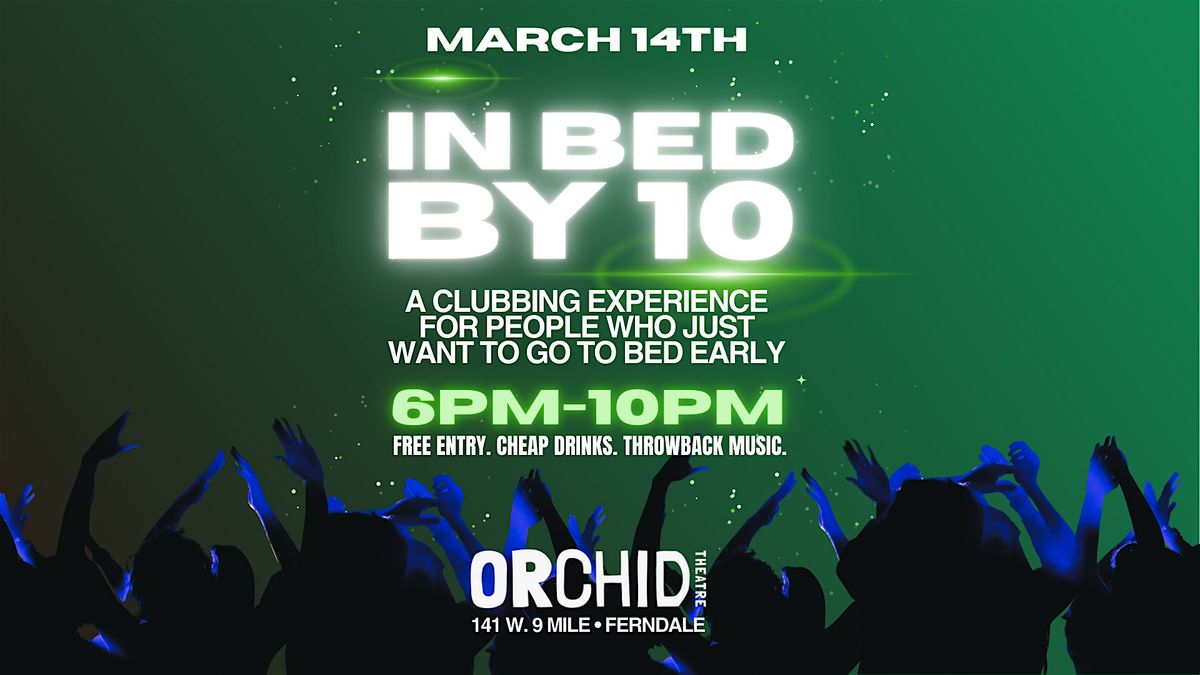 Join us at Orchid Theatre for IN BED BY 10 — a cozy-chaotic early-evening dance party for everyone who wants the dance floor energy without the midnight meltdown.