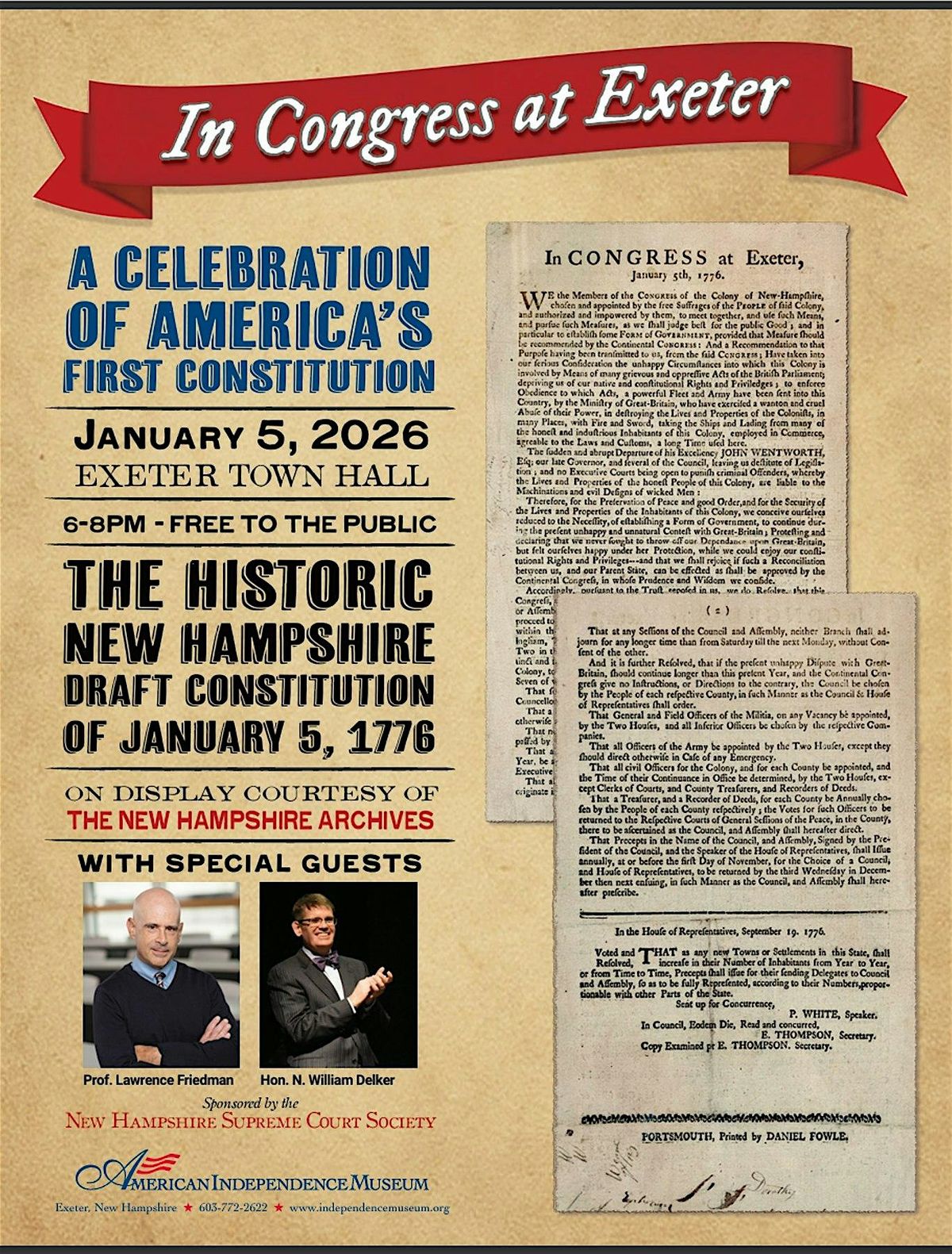 Two hundred and fifty years later, to the very day, this original document will return to where it was written. On January 5, 2026, the New Hampshire draft constitution will be on display at the Exeter Town Hall for one night only.
