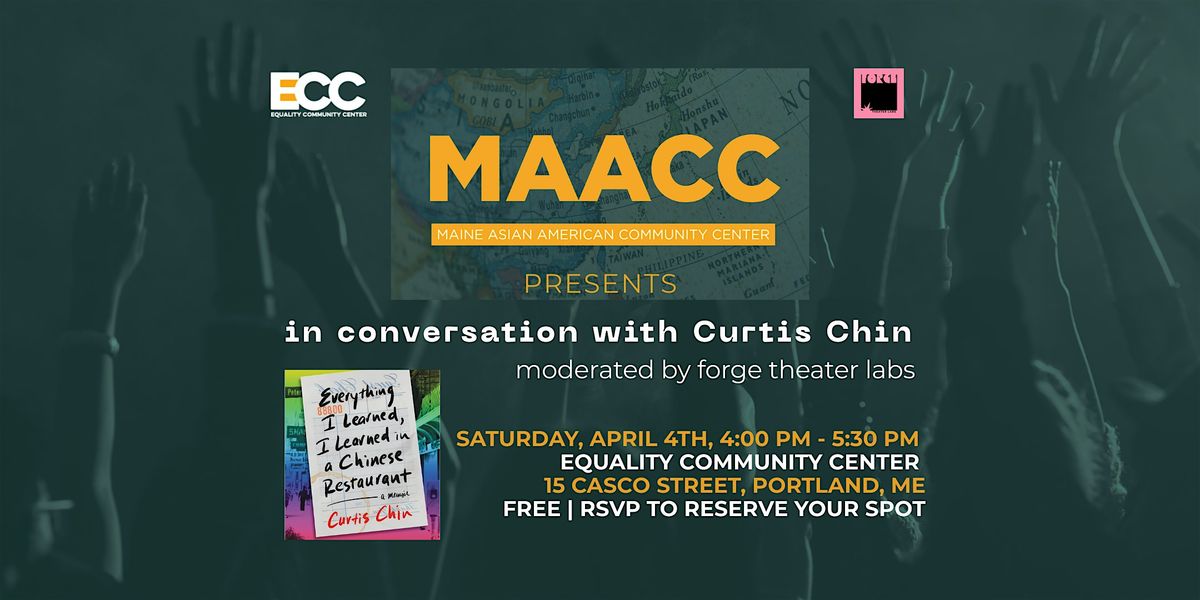 Maine’s First Asian American Community Center, in partnership with Equality Community Center and Forge Theater Labs, welcomes author, producer, director, and activist Curtis Chin for a community conversation about his memoir, Everything I Learned, I Learned in a Chinese Restaurant.