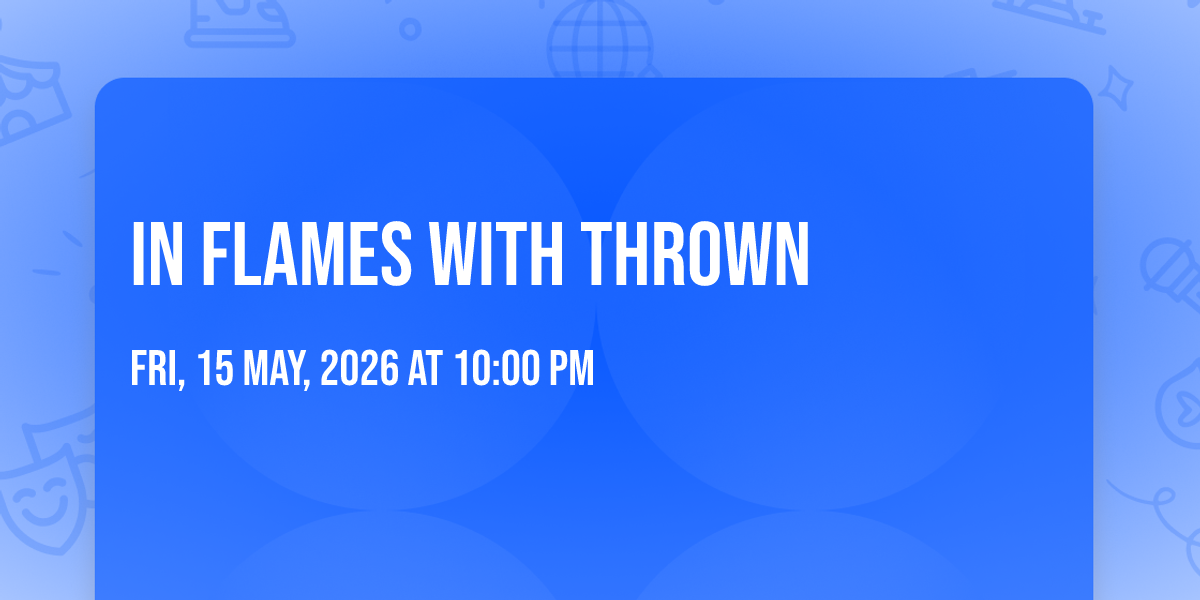 📍 Location: 42.984, -81.2492🌟 Be part of history at In Flames with THROWN, an extraordinary gathering that will captivate your imagination! 🏛️ The prestigious London Music Hall in London, ON sets the stage for an unforgettable experience on May 15th, 2026 at 10:00 PM. ✨ They are bringing together the finest elements of entertainment and innovation to create moments that will take your breath away. From the moment you arrive, you'll be immersed in an atmosphere of wonder and excitement. 🎯 This carefully planned event ensures every guest experiences something truly special. 🎊 Early booking is recommended for this must-attend event of the season!