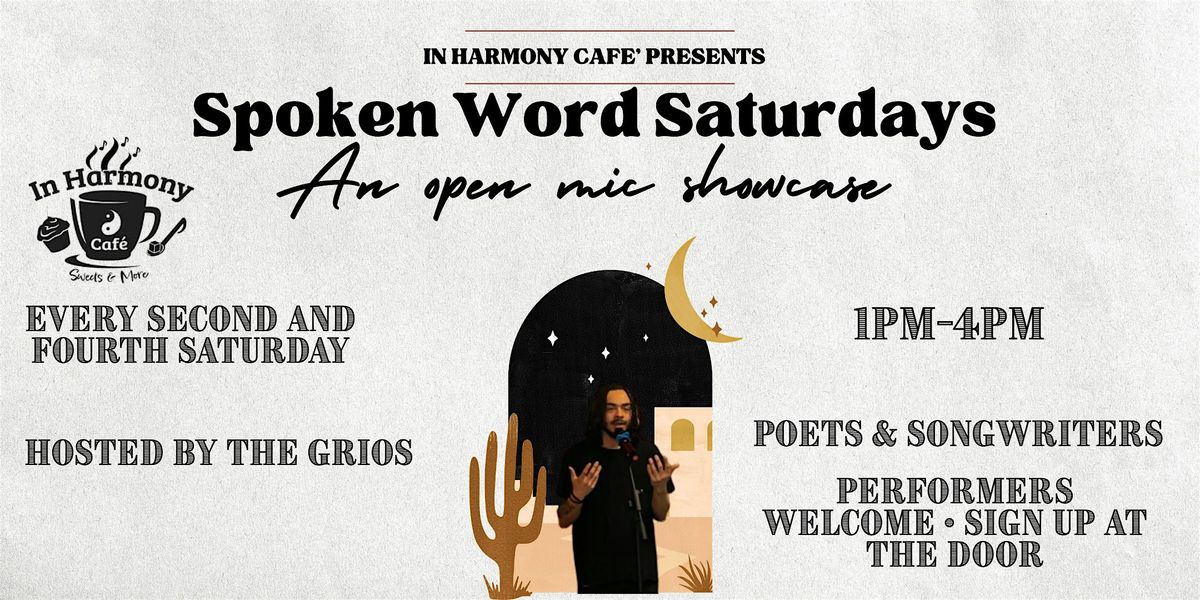 In Harmony Cafe presents Spoken Word Saturdays, an afternoon open mic experience celebrating poetry, storytelling, and creative expression.