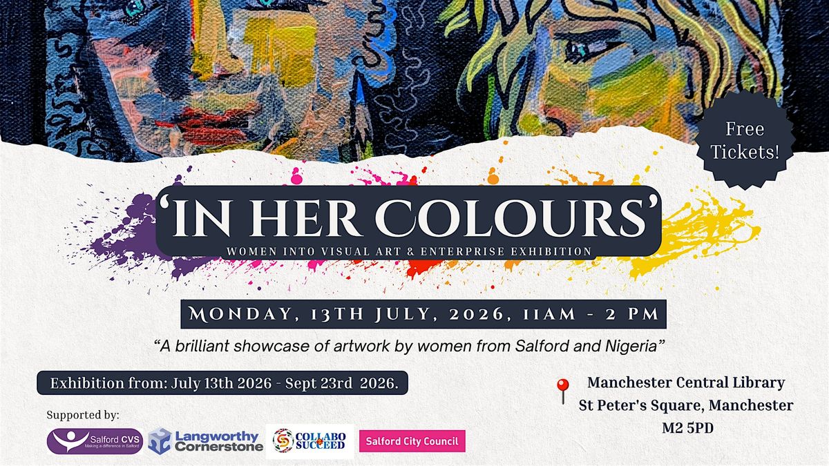 ‘In her Colours’ is a Women Into Visual Art Exhthe culmination of over three years hard work, which has taken the essence of an idea from Nigeria and transplanted it in Salford, where it has flourished.