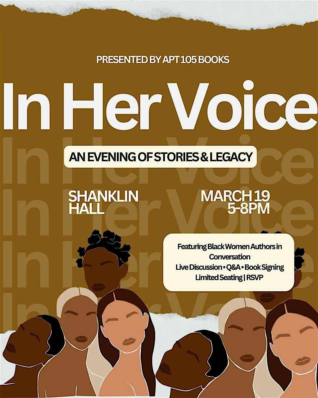 Join Apt 105 Books for In Her Voice: An Evening of Women’s Stories & Legacy — an intimate Women’s History Month literary gathering celebrating the power, craft, and cultural impact of Black women’s storytelling.