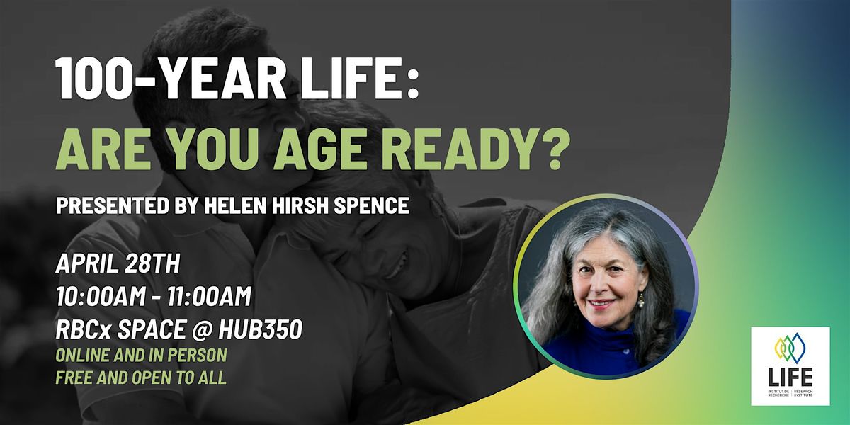 Join us April 28th for Helen Hirsh Spence’s talk the '100-Year Life: Are You Age-Ready?' From 10:00am to 11:00am in the RBCx space at Hub350, the University of Ottawa’s Kanata North campus.