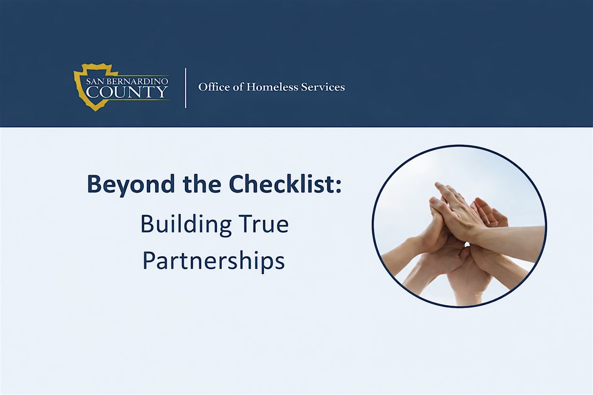 “Beyond the Checklist: Building True Partnerships” is a learning series designed to strengthen collaboration and shared understanding among the County, cities, and service providers. The series will explore how our work is interconnected and how stronger partnerships across functional areas can improve service delivery and outcomes.