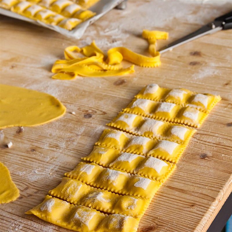 You’ll mix and roll fresh pasta dough, prepare a rich cheese filling, and hand-shape your own batch of ravioli. Your pasta will be finished with a simple tomato sauce designed to complement the delicate flavors of the filling. Along the way, you’ll learn essential pasta techniques, proper seasoning, and tips for working with fresh dough so you can bring these skills back to your own kitchen. Whether you’re planning a unique date night, a fun outing with friends, or just want to sharpen your cooking skills, this class offers the perfect mix of hands-on learning and social connection. All tools and ingredients are provided!