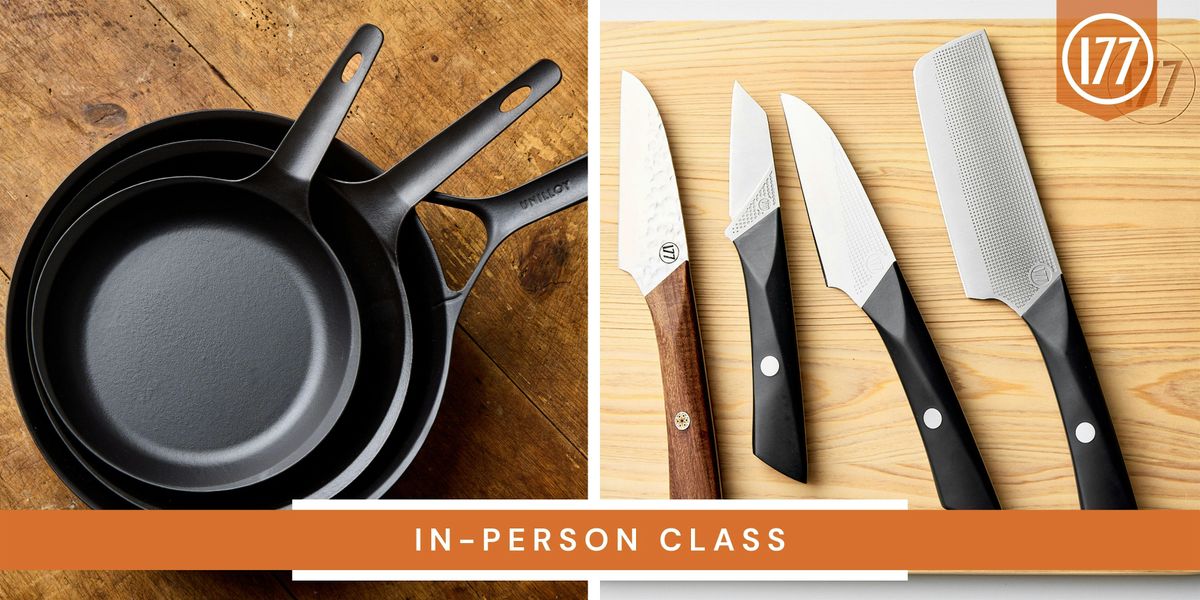 Each attendee is welcome to bring up to two cutting boards, three knives, four utensils and two cast iron items with them to this class. Please don’t bring any cast iron pans that are completely overtaken by rust; though we’ll happily provide suggestions on how to deal with serious cases, we won’t have time to tackle damage that intense during this class. If you bring the maximum number of items, we don’t guarantee that you’ll get through all of them - though we do guarantee that you will have the skills to take care of them at home!