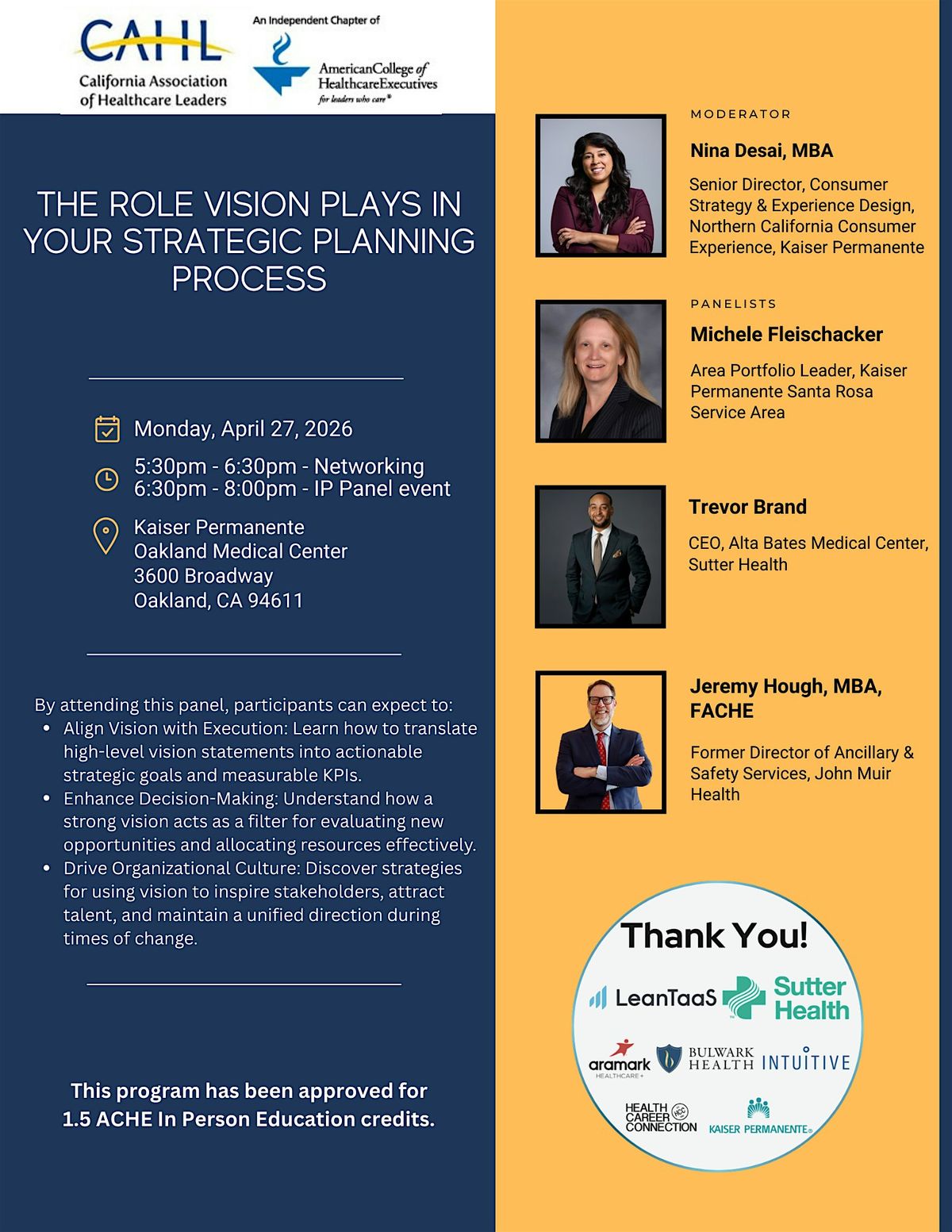 This program has been approved for 1.5 ACHE In Person Education credits.About this Event