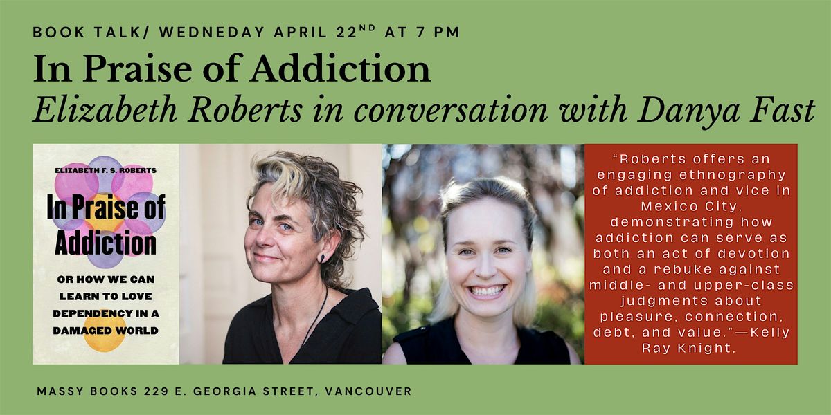 Join Massy Books and Princeton University Press, for a conversation between Danya Fast and Elizabeth Roberts on "In Priase of Addiction: Or How We Can Learn to Love Dependency in a Damaged World — a transformative way of understanding addiction, and an invitation to find connection in the pleasures of life we know are bad for us. Registration is required and is expected to fill up quickly, so make sure to get your tickets soon!