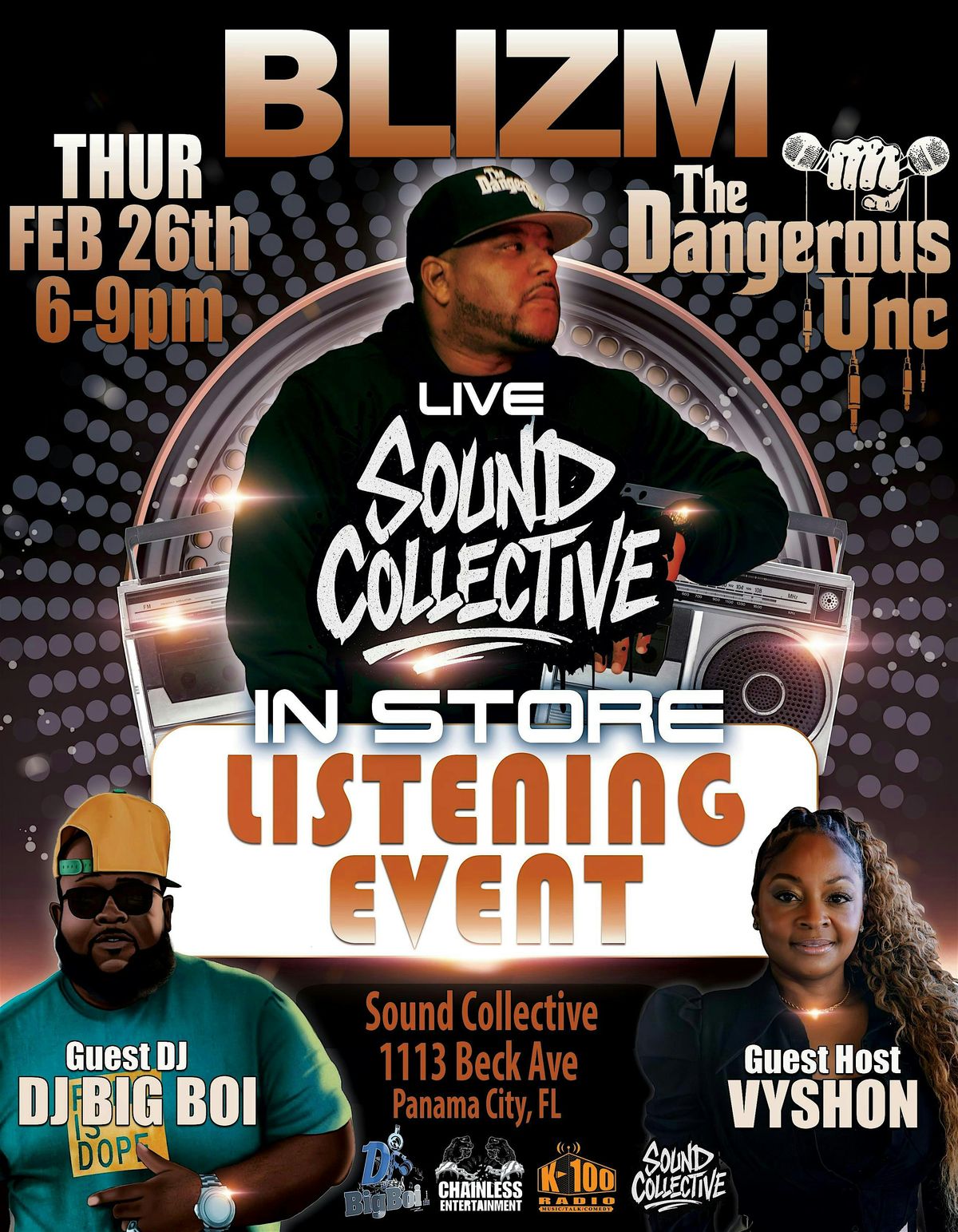 Info: Come in, check out the Sound Collective Venue and store, shop around and vibe out to the music being spinned by DJ Big Boi!
