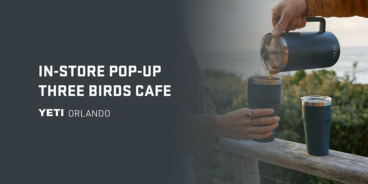 Join us at YETI Orlando as we welcome in Three Birds Cafe, a local woman-owned coffee cart, to serve up some perfectly brewed coffee. Plus, free coffee for customers while supplies last.*
