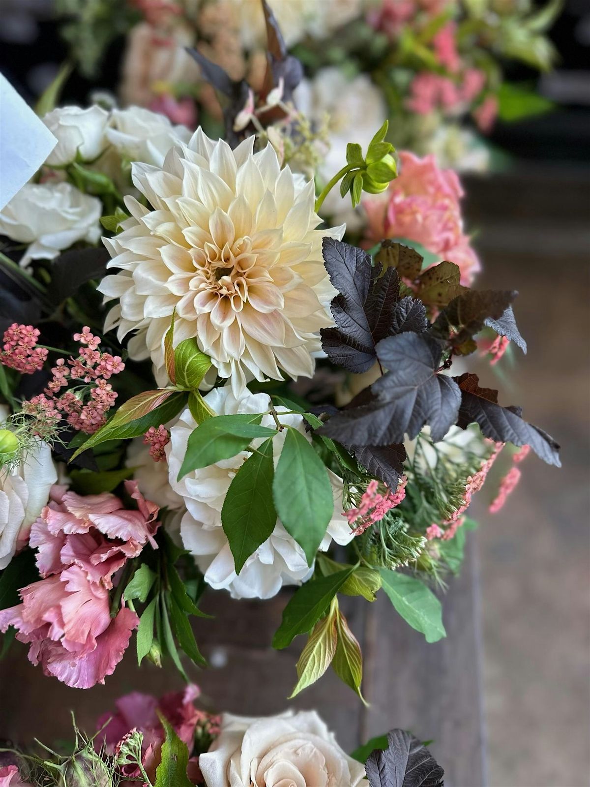 Each class revolves around a theme or type of flower. For example, ‘Peonies’ or ‘Jewel Toned Blooms’. The images on our website are representative of what a design might look like, but are not exact. In order to get you the most product, we hold off on ordering until a week before class to see what is available at the best price from our wholesalers. In classes that revolve around a certain flower, such as peonies, you can expect to be making a mixed bouquet highlighting that flower.